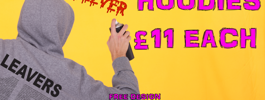 SCHOOL HOODIEWe are very competitive on our school leavers hoodies, as we print and embroider all in house. We offer a free design service, to customize your garments to your exact spec. With over 30 colour options and large stock levels, you will not be disappointed.