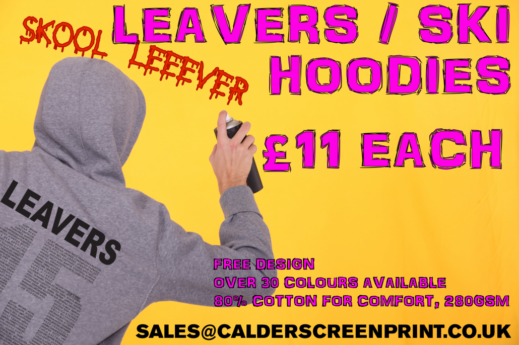 SCHOOL HOODIEWe are very competitive on our school leavers hoodies, as we print and embroider all in house. We offer a free design service, to customize your garments to your exact spec. With over 30 colour options and large stock levels, you will not be disappointed.